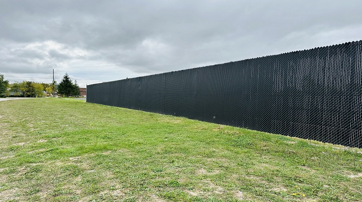 High-quality privacy fabric woven into chain-link fencing to block visibility and reduce wind.